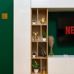 يشتمل مكان الإقامة على المطبخ المزود بالغلاية الكهربائية والمجمدة والفرن، بالإضافة إلى معدات صنع القهوة والشاي.